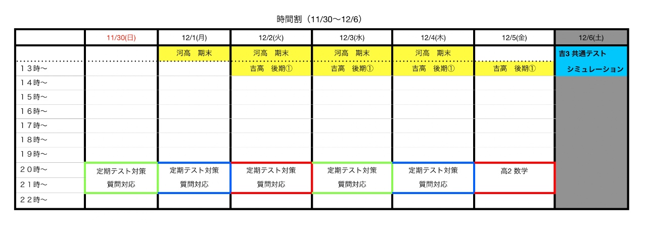 | 中学生 | 20,000円(税込) ※中学生は自習室使用・個別指導のみ |
